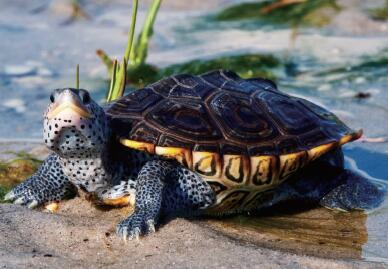 潮水翻涌时潜游的钻纹龟